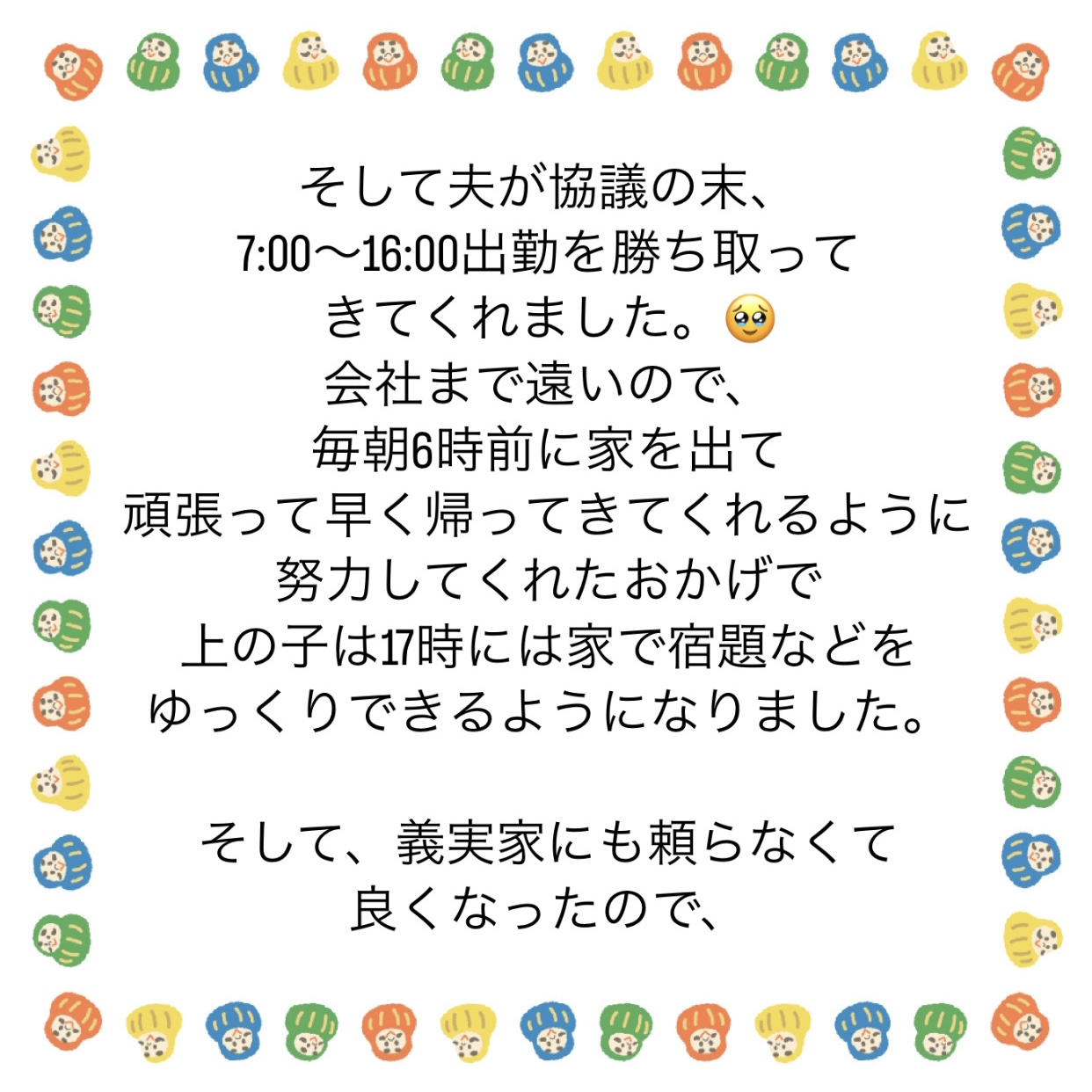 夫のフレックスの件は簡単に書きましたが、結構協議をしてくれたのです。前例がないフレックスだったみたいで…