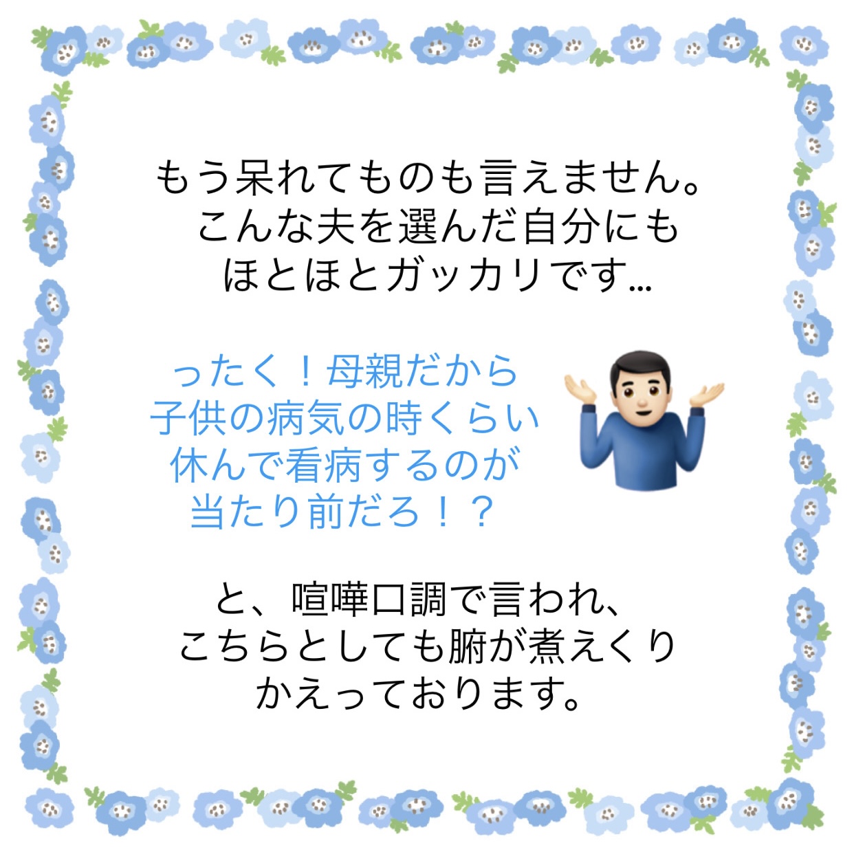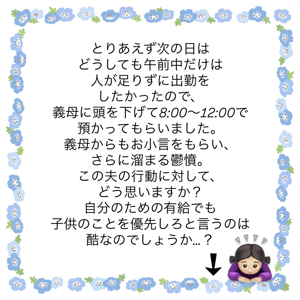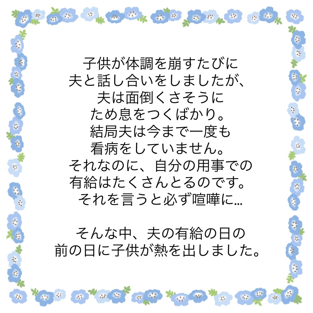 …そんなの知ったことか!!子供の体調不良時に自分の娯楽を優先するなら、親になるな!!