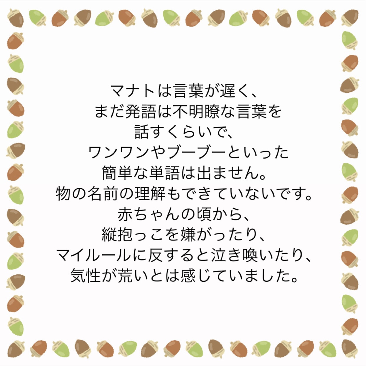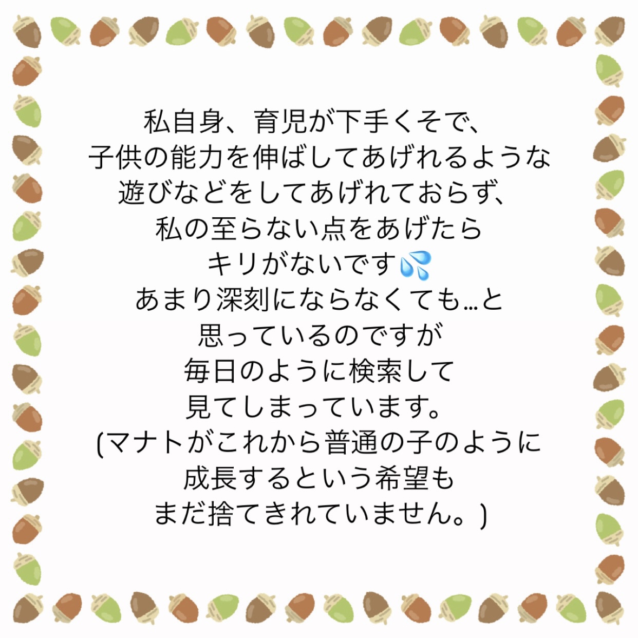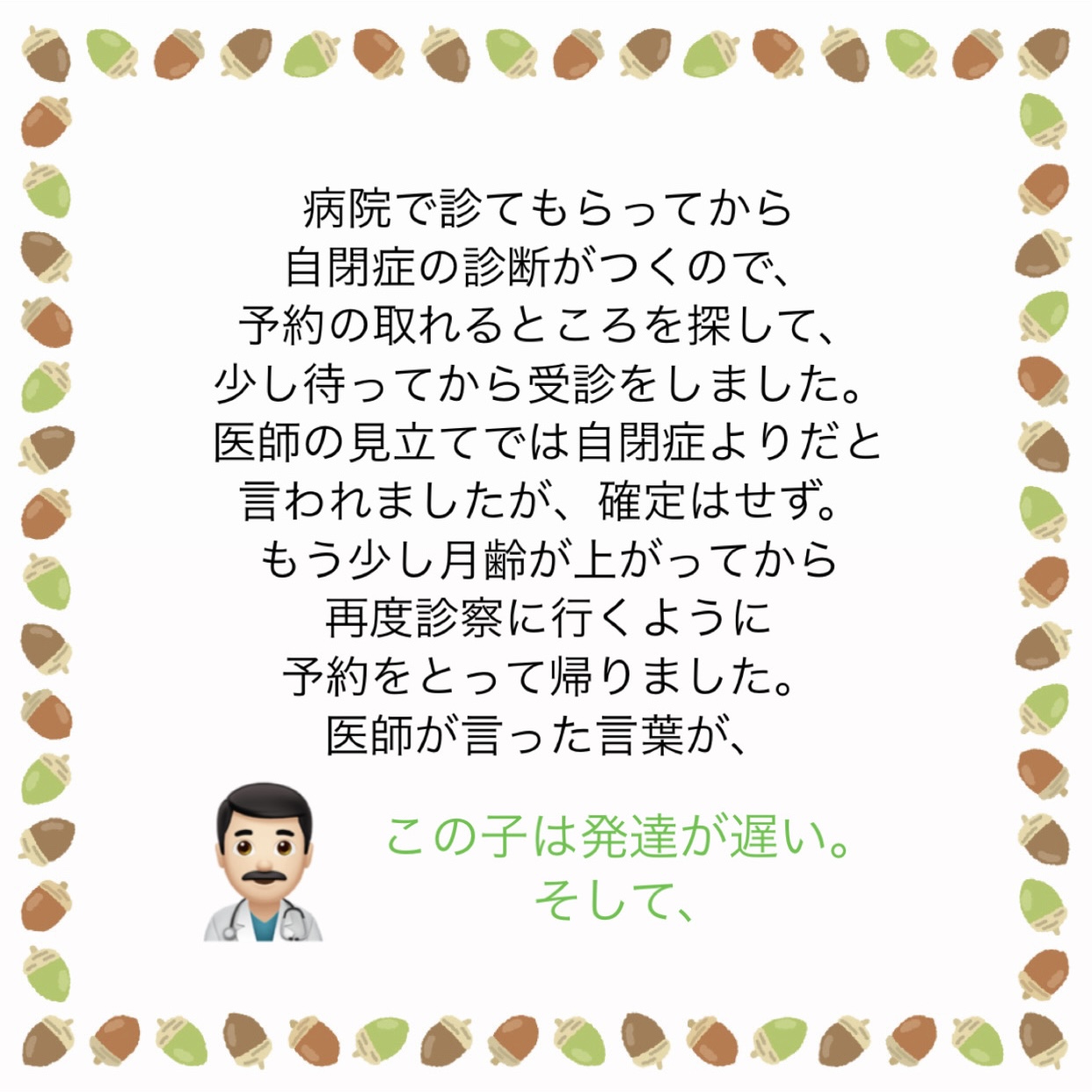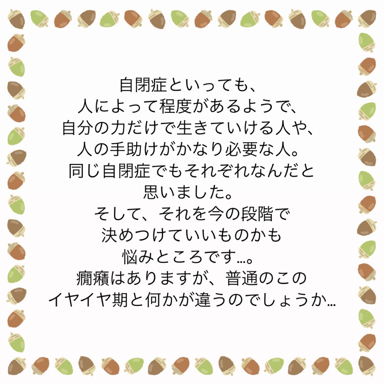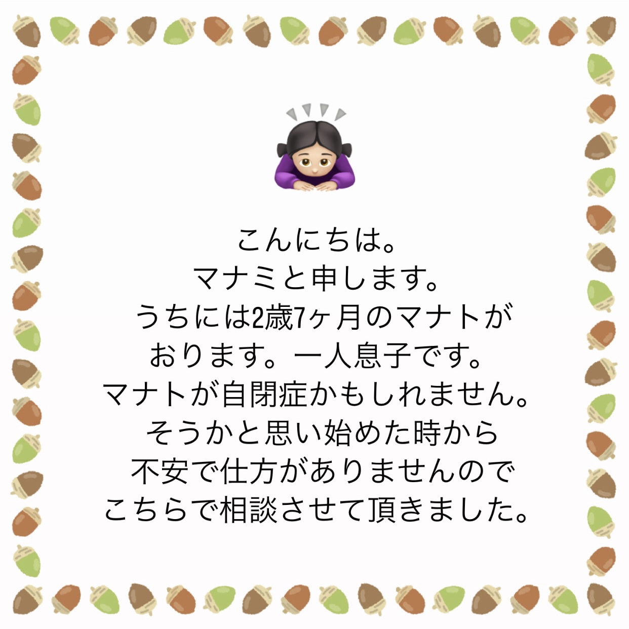 うちの子2歳…「自閉症と性格」の違いとは?2025.06.19意見求む意見求む うちの子2歳…「自閉症と性格」の違いとは?広告 あとがき諸先輩!ぜひご意見&アドバイスよろしくお願いします! 14 コメントはこちら 同じカテゴリの記事 「たまにはいーじゃん」はあなたが言う言葉? じゃあ自分で食材から用意しろや。 自己嫌悪に陥っています。 姉の葬儀屋の話。② 姉の葬儀屋の話。① 離婚後のパートナーとの向き合い方 離婚する夫側の葬儀に子供を参列させるかどうか。 甥っ子が無理になりました… 新積立NISAの銀行対応について 悪阻中の夫の「息抜き」について 子育て支援について! 子供が「行きたくない」と言う習い事について② 子供が「行きたくない」と言う習い事について① ママ友として私が悪いんでしょうか…② ママ友として私が悪いんでしょうか…① 歳の離れた姉。喧嘩になることが多すぎて縁を切ろうかと考えています。④ 歳の離れた姉。喧嘩になることが多すぎて縁を切ろうかと考えています。③ 歳の離れた姉。喧嘩になることが多すぎて縁を切ろうかと考えています。② 歳の離れた姉。喧嘩になることが多すぎて縁を切ろうかと考えています。① 息子夫婦といい関係でいたいだけなのに… 義実家との付き合いに悩んでいます。 夫との金銭感覚が違いすぎて… 夫が激務すぎて離婚を毎日考えてしまっています。 ADHDの子がいて、親族との付き合いに悩んでいます。 産休に入る人が偉そうです! 息子の新築祝いを用意できません…! 父が透析拒否!私は透析に通わせたい。 元彼と復縁したい。アドバイス求む! ケチな友人。これって私の心が狭いだけ!? 不妊っぽいので養子縁組を考えただけなんですが…② 不妊っぽいので養子縁組を考えただけなんですが…① 義母と義母の彼氏が娘を預かりたいと言ってきます…。 義妹が資金援助を拒否しているのを説得したい。 「自分ばかり」をなくしたい。 産後2ヶ月の妻。「疲れた」が口癖です。 頻繁に遊びに誘って来るママ友の話。 夫から「別居からの離婚」を提示され出て行かれた 妻との喧嘩でチェーンをかけられた今後の関係はどうすれば… しつこい保険の勧誘!躱わし方! 父はおいでと言ってくれたのに…② 父はおいでと言ってくれたのに…① 義母との同居に悩んでいます。 我が家の食い尽くし夫② 我が家の食い尽くし夫① この離婚は後悔するでしょうか? 娘の意地悪な言葉が気になります。 旦那の愚痴が多すぎます…! 都合のいい時だけの友達っていますか? ママがいいって。その言葉が辛いです。 この職場最悪…!見限って正解ですか!? こっちだって…!杉浦太陽を夫にしたかったし…! 夫に「大黒柱になってくれ」と言われました。その後③ 夫に「大黒柱になってくれ」と言われました。その後② 夫に「大黒柱になってくれ」と言われました。その後 助産師さん!その決めつけ、やめて下さい! 僻みです!!! 多様性って便利な言葉ですよね。 3年の不妊治療を経て… 継父がそろそろ逝くようです。 うちの子2歳…「自閉症と性格」の違いとは? なんで女性は性◯為が嫌なのですか? この投書の奥さんに同情しています。 些細なことで離婚…でしょうかね!? 有給夫に看護を頼む…これは悪ですか…? 上の階の騒音…クレーマーになりそう…② 上の階の騒音…クレーマーになりそう…① 夫を捨ててもいいですか?② 夫を捨ててもいいですか?① この春入ってきた新人。指導係になったのですが… 職場の同僚のお喋りにイラッと… 義母の介護きっかけで離婚したい私。 うちの夫を見放して離婚に踏み切るか否か。 実家に戻りたい。と、考える50代です。 親の遺産がいずれ姪のものになる… これから子供をつくりたいのですが… 実母に働いてもらいたい…これって酷ですかね…? 新人会社員としての態度とは… 身支度に時間をかけすぎと言ってもいいと思いますか? 妻のちょっとした頼み事がストレスです 子供が欲しい。と初めて思いましたが手遅れでした。 お小遣い制はヤダ! 実母から大学費用を請求されました。 これ以上、どう頑張れというのでしょうか… 妻から「名字を変えたくない」と言われました。 高齢ですが、出産したいのです。 「腰が痛い」と言う夫。イライラしてしまう私は冷たい嫁でしょうか… 「車に乗せて」とお願いしてくるお隣さん 夫婦の休日って折半してますか? 人生初めての「脈アリ」かもしれません… これって正解の対応でしたよね? 「私が嫌」だから元夫に子供を会わせないのはダメでしょうか… 妻との喧嘩…誰か妻の気持ちを教えてください! 育休中の方!ご意見願います! 時短勤務の妻との育児分担について 義妹に謝って、また親戚付き合いをしたい私。 結婚式に招待した友人からのLINEが… DINKs、子無し夫婦はどんな考え方をされていますか? 夫に「大黒柱になってくれ」と言われました。続き 夫に「大黒柱になってくれ」と言われました 義姉に劣等感を抱いてしまう私。 前の記事 なんで女性は性◯為が嫌なのですか? 2025.06.18次の記事 継