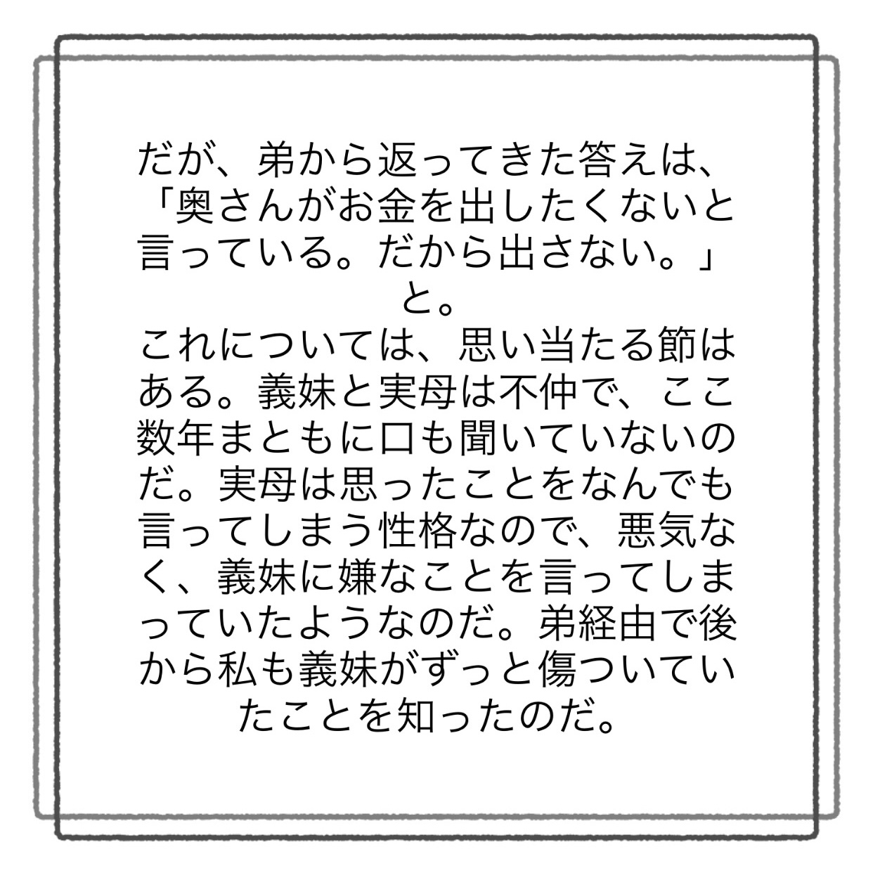 こういう疎遠になるくらい嫌なことをされた人にお金を出したくない気持ちはわかる気がするけど…