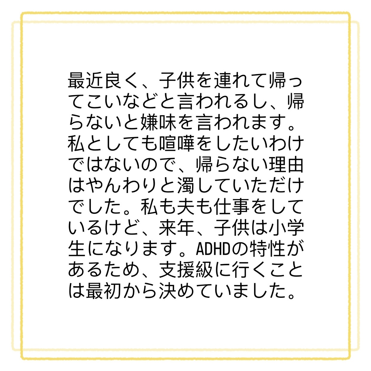 ADHDの子がいて、親族との付き合いに悩んでいます。2025.10.16意見求む意見求む ADHDの子がいて、親族との付き合いに悩んでいます。広告 広告 あとがき共感やアドバイスありましたら、コメントください! 12 コメントはこちら 同じカテゴリの記事 「たまにはいーじゃん」はあなたが言う言葉? じゃあ自分で食材から用意しろや。 自己嫌悪に陥っています。 姉の葬儀屋の話。② 姉の葬儀屋の話。① 離婚後のパートナーとの向き合い方 離婚する夫側の葬儀に子供を参列させるかどうか。 甥っ子が無理になりました… 新積立NISAの銀行対応について 悪阻中の夫の「息抜き」について 子育て支援について! 子供が「行きたくない」と言う習い事について② 子供が「行きたくない」と言う習い事について① ママ友として私が悪いんでしょうか…② ママ友として私が悪いんでしょうか…① 歳の離れた姉。喧嘩になることが多すぎて縁を切ろうかと考えています。④ 歳の離れた姉。喧嘩になることが多すぎて縁を切ろうかと考えています。③ 歳の離れた姉。喧嘩になることが多すぎて縁を切ろうかと考えています。② 歳の離れた姉。喧嘩になることが多すぎて縁を切ろうかと考えています。① 息子夫婦といい関係でいたいだけなのに… 義実家との付き合いに悩んでいます。 夫との金銭感覚が違いすぎて… 夫が激務すぎて離婚を毎日考えてしまっています。 ADHDの子がいて、親族との付き合いに悩んでいます。 産休に入る人が偉そうです! 息子の新築祝いを用意できません…! 父が透析拒否!私は透析に通わせたい。 元彼と復縁したい。アドバイス求む! ケチな友人。これって私の心が狭いだけ!? 不妊っぽいので養子縁組を考えただけなんですが…② 不妊っぽいので養子縁組を考えただけなんですが…① 義母と義母の彼氏が娘を預かりたいと言ってきます…。 義妹が資金援助を拒否しているのを説得したい。 「自分ばかり」をなくしたい。 産後2ヶ月の妻。「疲れた」が口癖です。 頻繁に遊びに誘って来るママ友の話。 夫から「別居からの離婚」を提示され出て行かれた 妻との喧嘩でチェーンをかけられた今後の関係はどうすれば… しつこい保険の勧誘!躱わし方! 父はおいでと言ってくれたのに…② 父はおいでと言ってくれたのに…① 義母との同居に悩んでいます。 我が家の食い尽くし夫② 我が家の食い尽くし夫① この離婚は後悔するでしょうか? 娘の意地悪な言葉が気になります。 旦那の愚痴が多すぎます…! 都合のいい時だけの友達っていますか? ママがいいって。その言葉が辛いです。 この職場最悪…!見限って正解ですか!? こっちだって…!杉浦太陽を夫にしたかったし…! 夫に「大黒柱になってくれ」と言われました。その後③ 夫に「大黒柱になってくれ」と言われました。その後② 夫に「大黒柱になってくれ」と言われました。その後 助産師さん!その決めつけ、やめて下さい! 僻みです!!! 多様性って便利な言葉ですよね。 3年の不妊治療を経て… 継父がそろそろ逝くようです。 うちの子2歳…「自閉症と性格」の違いとは? なんで女性は性◯為が嫌なのですか? この投書の奥さんに同情しています。 些細なことで離婚…でしょうかね!? 有給夫に看護を頼む…これは悪ですか…? 上の階の騒音…クレーマーになりそう…② 上の階の騒音…クレーマーになりそう…① 夫を捨ててもいいですか?② 夫を捨ててもいいですか?① この春入ってきた新人。指導係になったのですが… 職場の同僚のお喋りにイラッと… 義母の介護きっかけで離婚したい私。 うちの夫を見放して離婚に踏み切るか否か。 実家に戻りたい。と、考える50代です。 親の遺産がいずれ姪のものになる… これから子供をつくりたいのですが… 実母に働いてもらいたい…これって酷ですかね…? 新人会社員としての態度とは… 身支度に時間をかけすぎと言ってもいいと思いますか? 妻のちょっとした頼み事がストレスです 子供が欲しい。と初めて思いましたが手遅れでした。 お小遣い制はヤダ! 実母から大学費用を請求されました。 これ以上、どう頑張れというのでしょうか… 妻から「名字を変えたくない」と言われました。 高齢ですが、出産したいのです。 「腰が痛い」と言う夫。イライラしてしまう私は冷たい嫁でしょうか… 「車に乗せて」とお願いしてくるお隣さん 夫婦の休日って折半してますか? 人生初めての「脈アリ」かもしれません… これって正解の対応でしたよね? 「私が嫌」だから元夫に子供を会わせないのはダメでしょうか… 妻との喧嘩…誰か妻の気持ちを教えてください! 育休中の方!ご意見願います! 時短勤務の妻との育児分担について 義妹に謝って、また親戚付き合いをしたい私。 結婚式に招待した友人からのLINEが… DINKs、子無し夫婦はどんな考え方をされていますか? 夫に「大黒柱になってくれ」と言われました。続き 夫に「大黒柱になってくれ」と言われました 義姉に劣等感を抱いてしまう私。 前の記事 産休に入る人が偉そうです! 2025.10.15